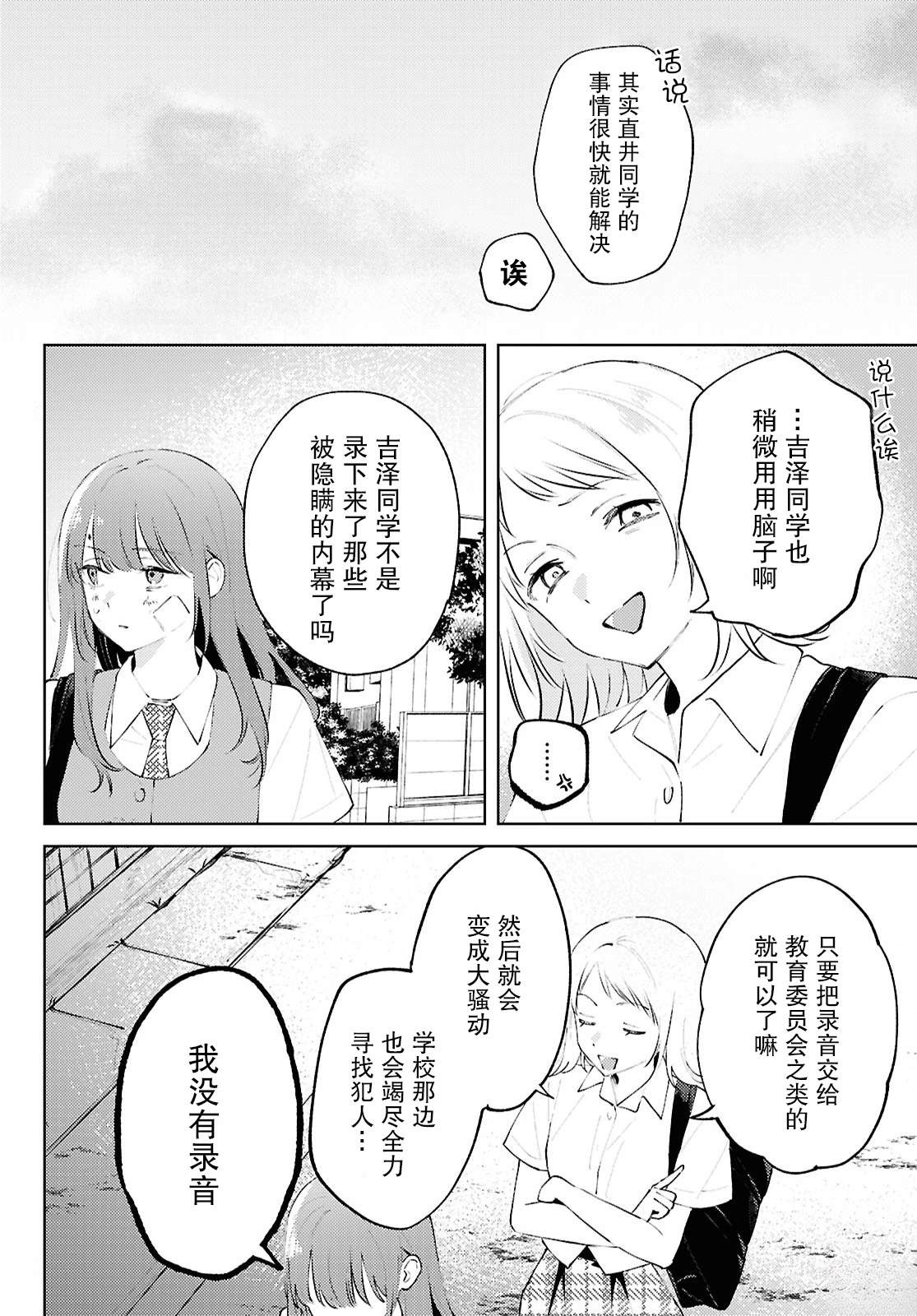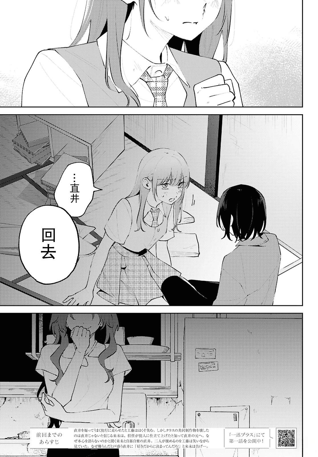 被父母束缚、受老师偏爱、遭同学讥讽,于无路可退的日常中挣扎的吉泽,心中的阴暗面被同班的直井所察觉……