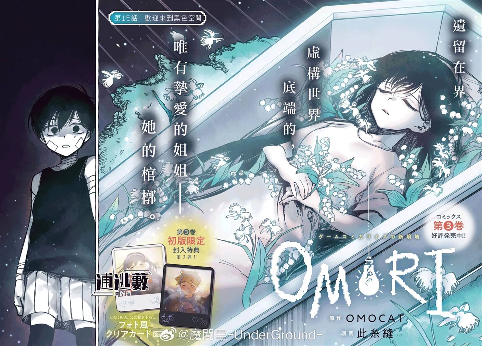 《OMORI》是由美国独立游戏工作室 OMOCAT 所发,于 2020 年在 PC 平台上发售的恐怖角色扮演游戏。玩家必需操作家里蹲的主人公「Omori」,在现实与精神的世界中来回行动,以面对心中的黑暗。 漫画版将在新锐作家 此纟缝(このいとぬい)的绘制,以及原作团队的监督下制作。官方透过 X(T[]Twitter)表示「这将是部献给国内外所有粉丝,以及初次认识《OMORI》的人的一个『爱』的故事。」而 此纟缝 也说道「在得到超乎想像的反响后,又让我再次认知到这是一部被众多粉丝们所喜爱的作品。能参与这么棒的作品真的令我非常高兴!」并公了纪念插画[-折叠]