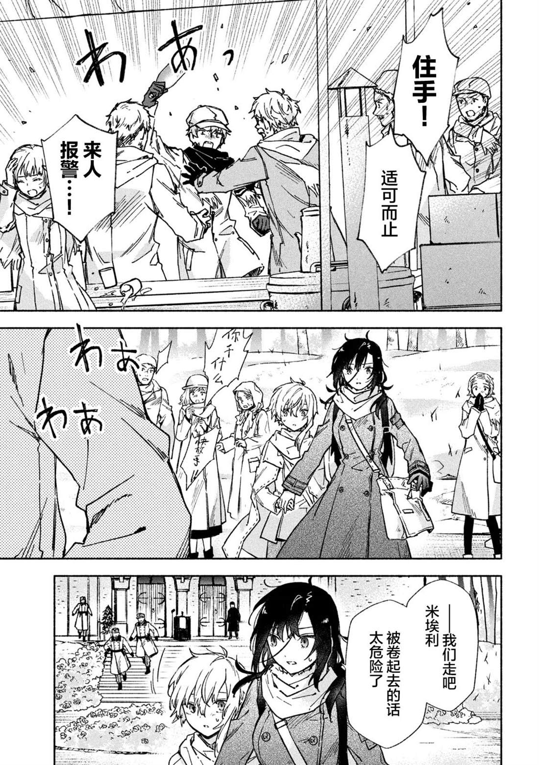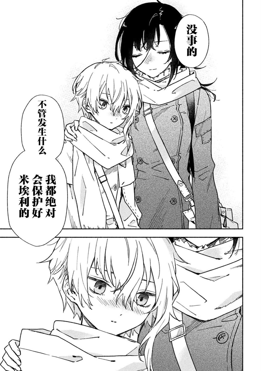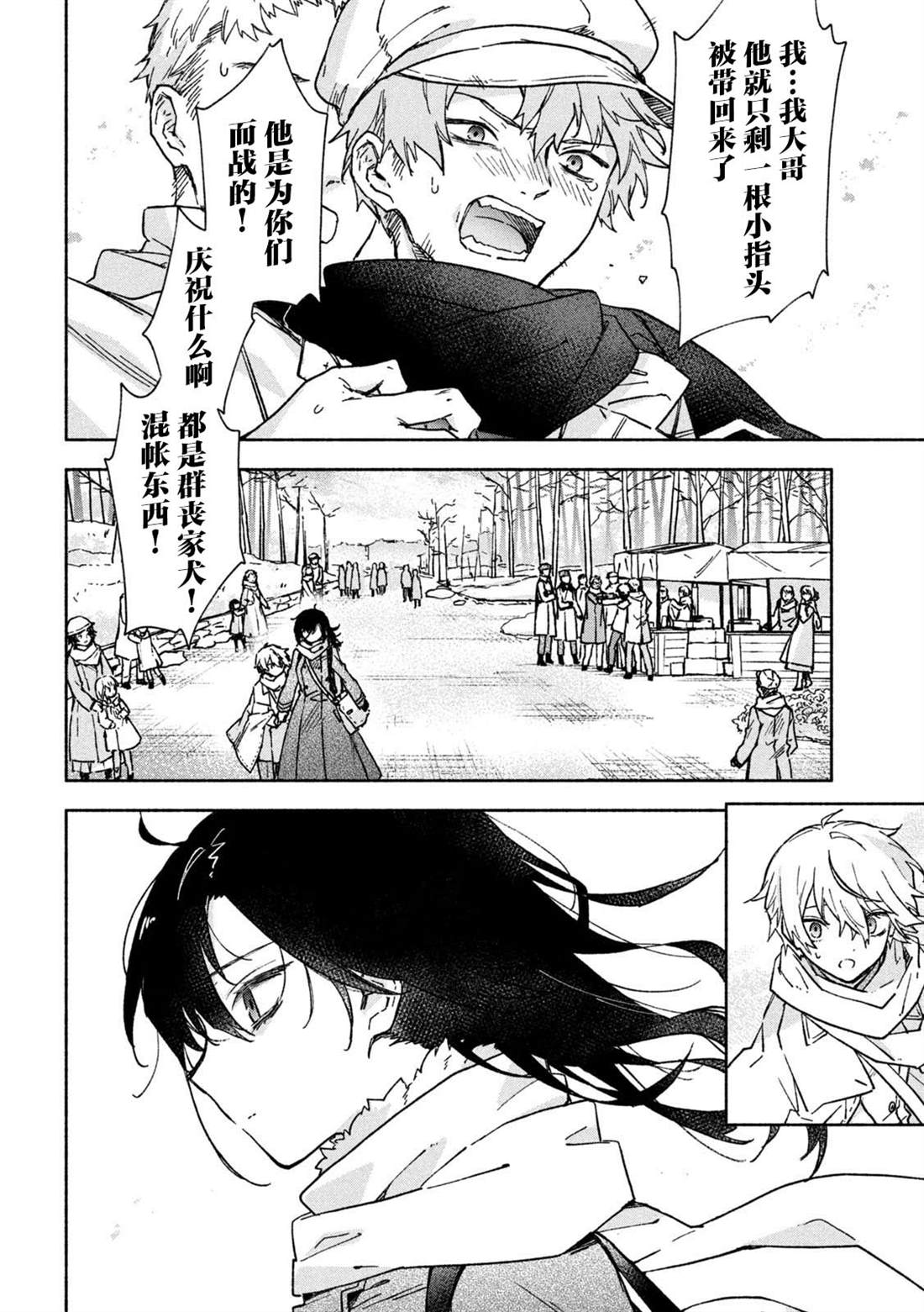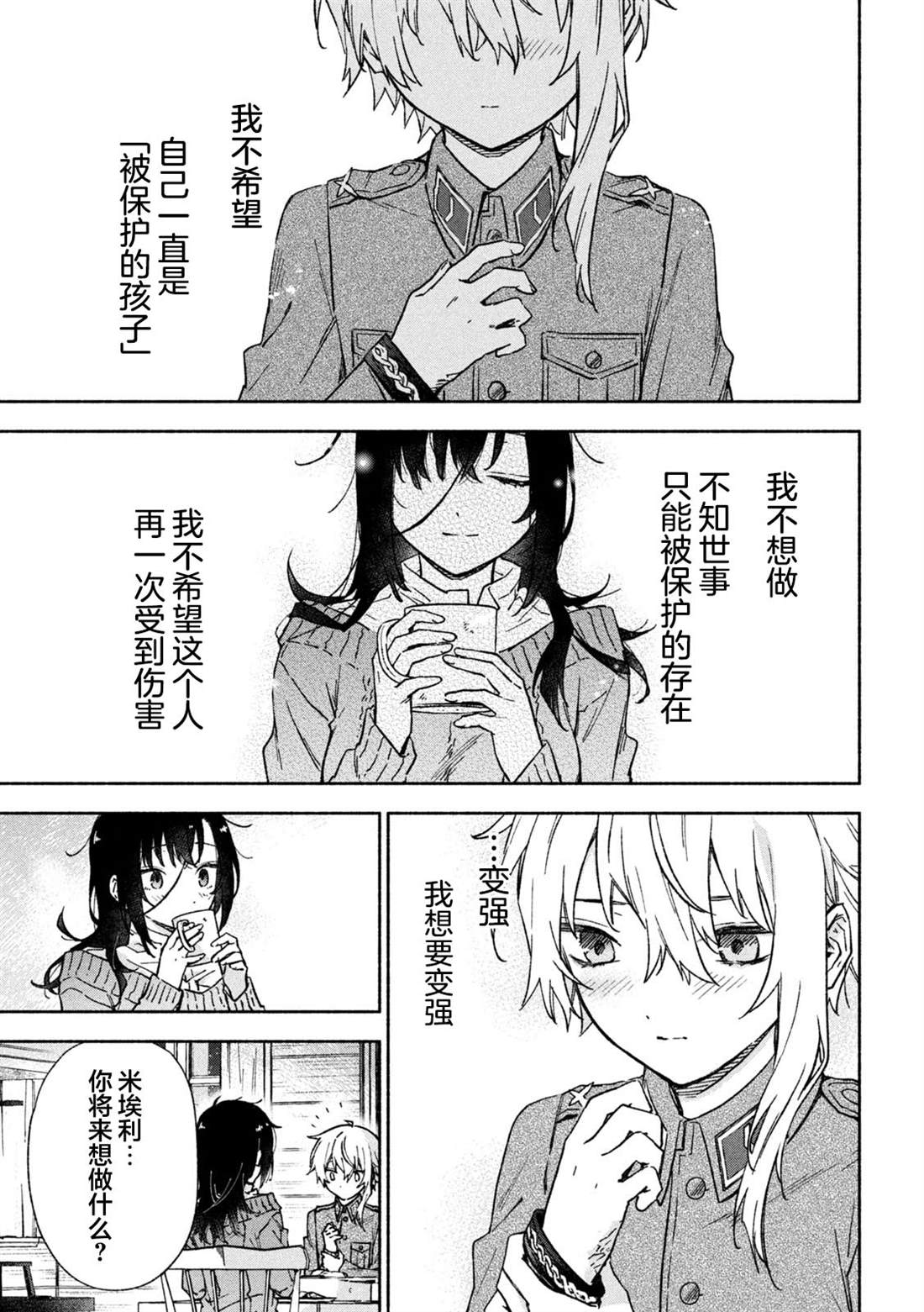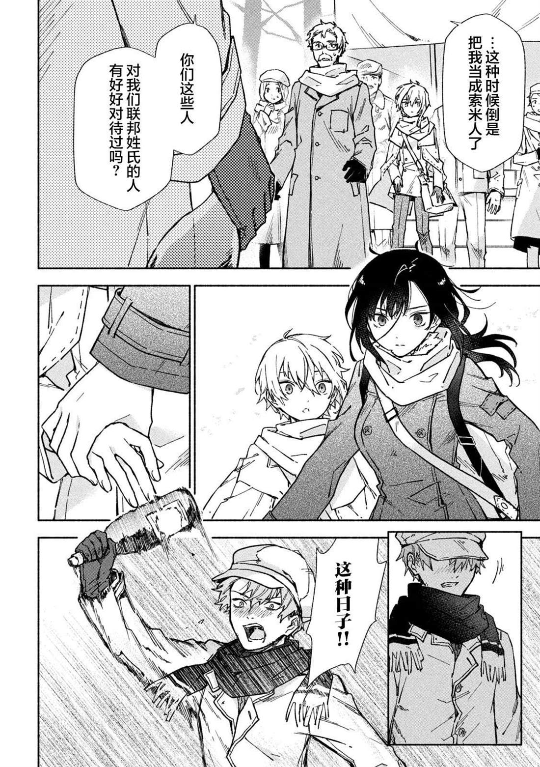 失去了去处的孤身一人的两人静静地依偎在一起等待著雪融化的日子——。战争结束4个月后的冬天始,在还残留著战争伤痕的森林中相遇的是只知道战场的原少年兵米耶利和被夺走故乡的退伍军人吉尔雅诗卡。在“战后”拼命活下去的2人坚强而虚幻的雪国慢生活!