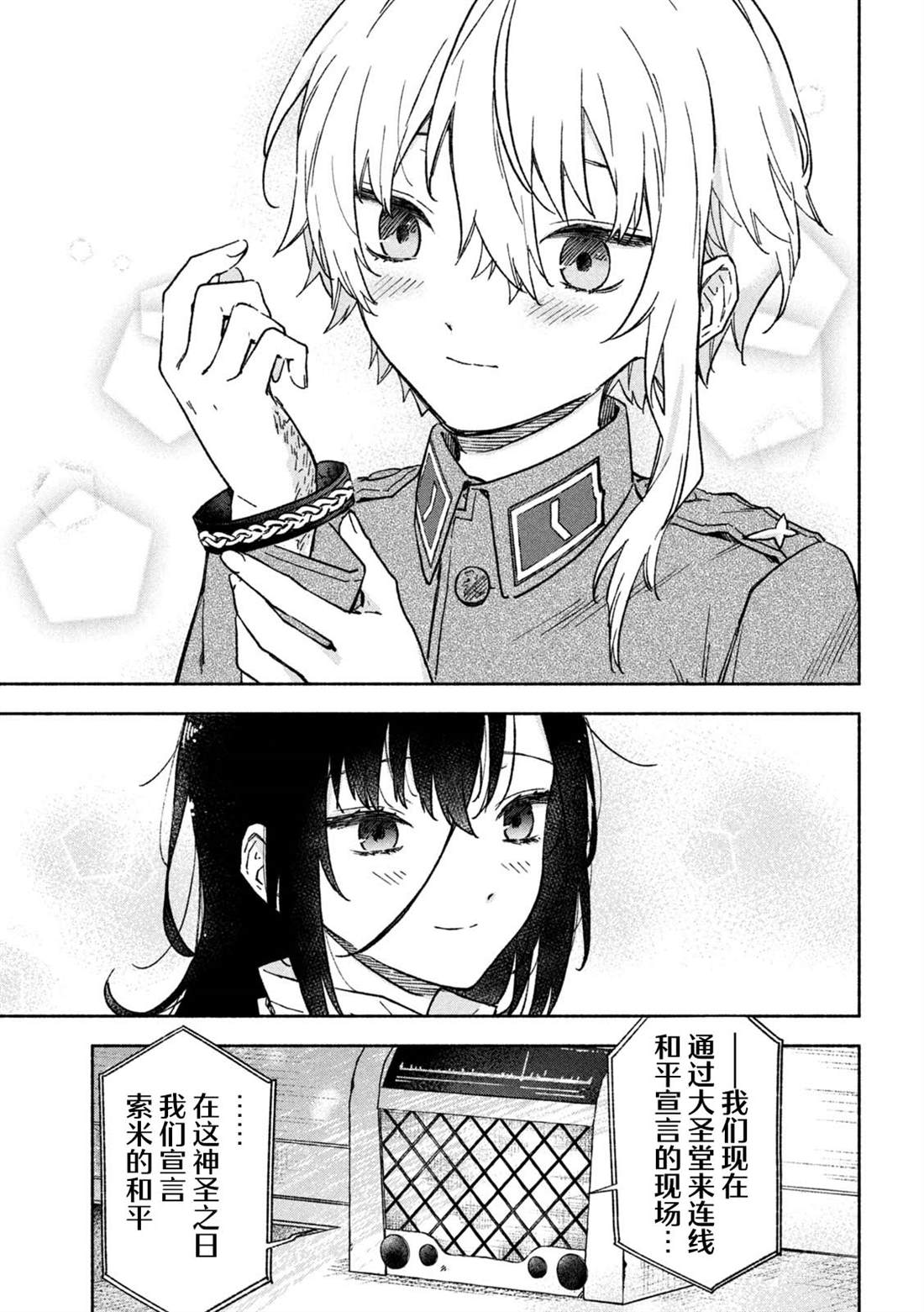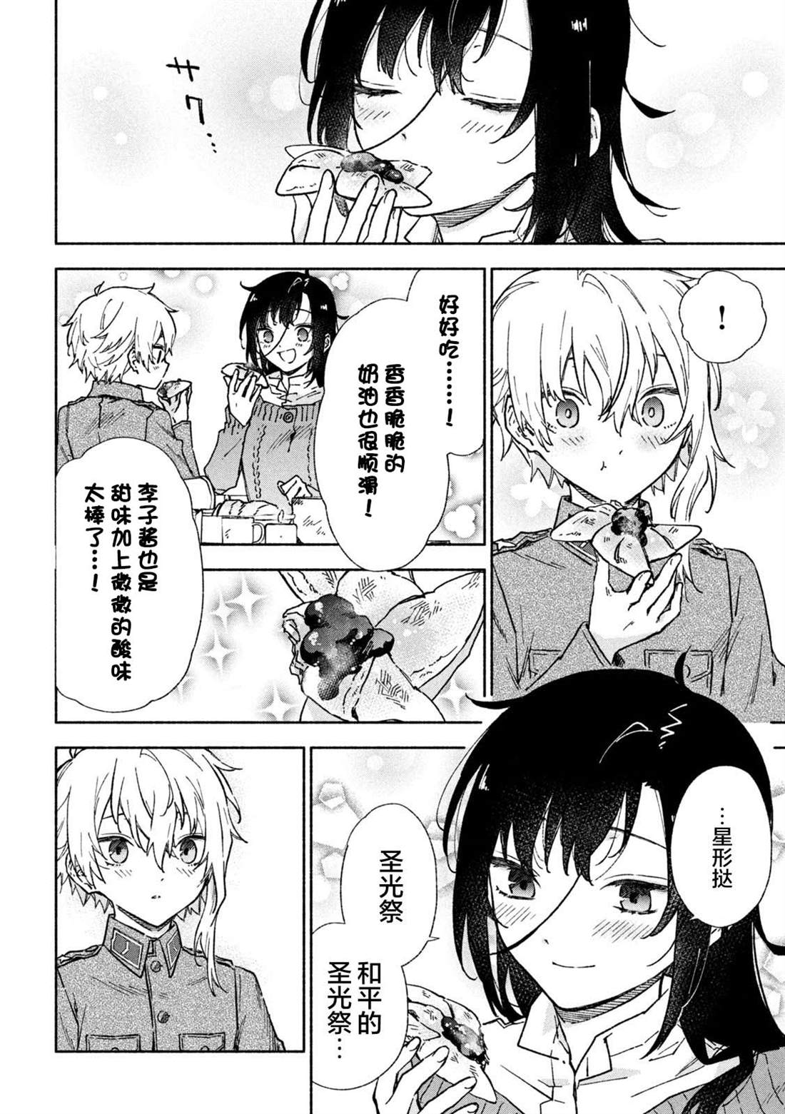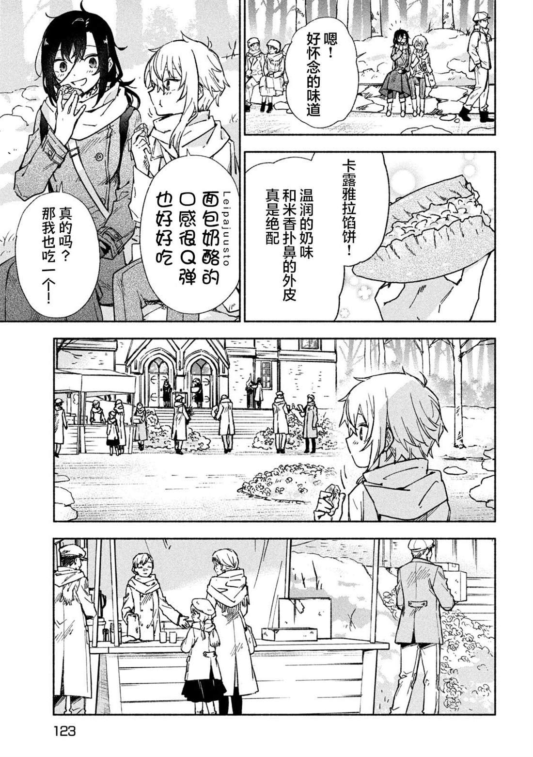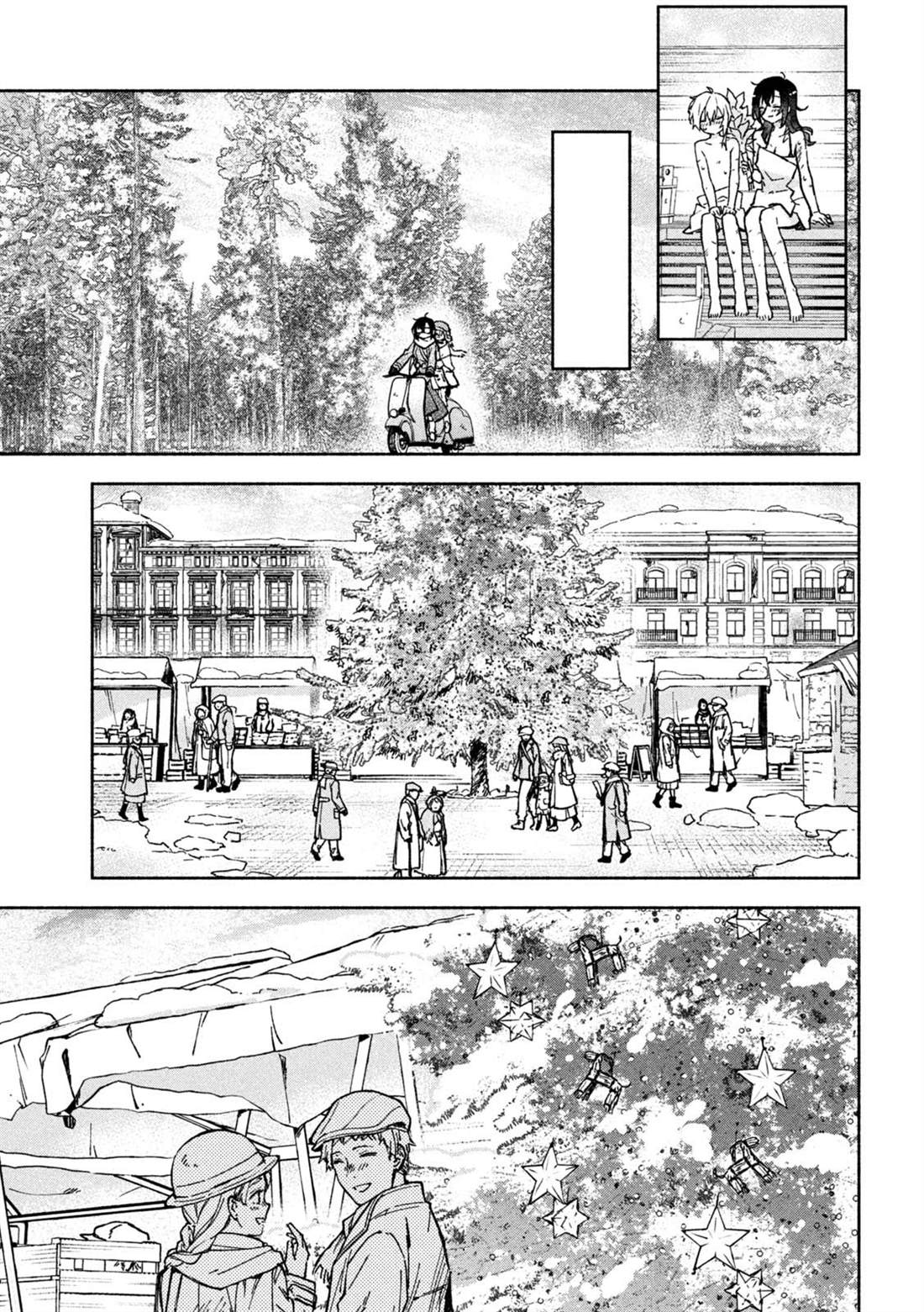失去了去处的孤身一人的两人静静地依偎在一起等待著雪融化的日子——。战争结束4个月后的冬天始,在还残留著战争伤痕的森林中相遇的是只知道战场的原少年兵米耶利和被夺走故乡的退伍军人吉尔雅诗卡。在“战后”拼命活下去的2人坚强而虚幻的雪国慢生活!