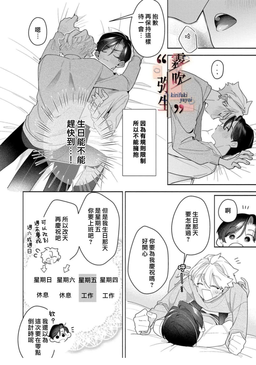 【严禁过度触碰!严守规则的番关系!?双向单恋青梅竹马的焦躁ABO恋爱!】 身为Alpha的隼人有个长年的烦恼—— 那就是与年长的青梅竹马兼番的Omega利一始终停留在亲吻阶段。 九年前,年幼的隼人在嬉戏打闹时不小心咬了他的后颈,阴差阳错结成了番关系。为此利一强迫他立下誓言:在成年之前绝不越界。[]。 距离20岁只剩1年,在此之前一定要两情相悦! 隼人始主动出击却屡屡失败…本该如此!? 原以为还是孩子的隼人,竟用成熟的手法温柔爱抚,让利一的理智濒临崩溃…[-折叠]